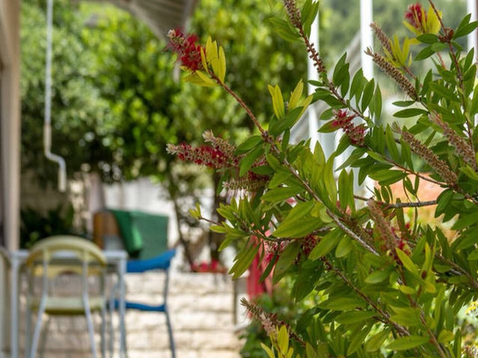 Im Garten steht eine Außendusche und ein Grill zur Verfügung